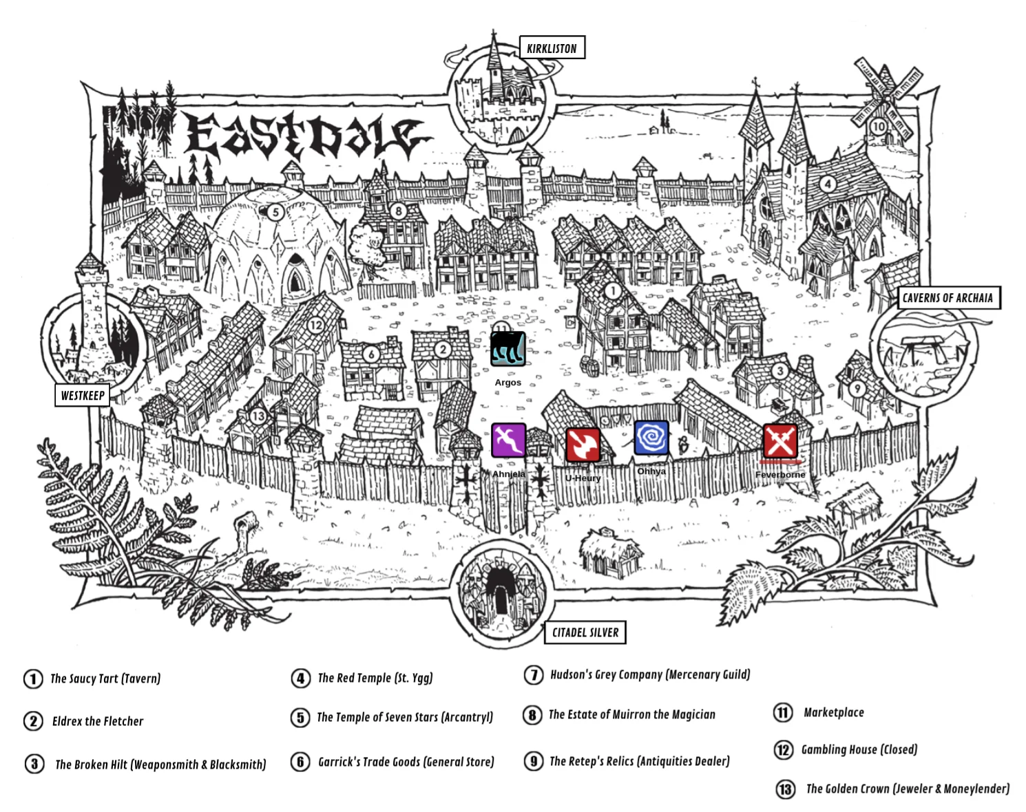 Garrick, a dwarf, runs the trading post. He is sympathetic to Denara’s cause.