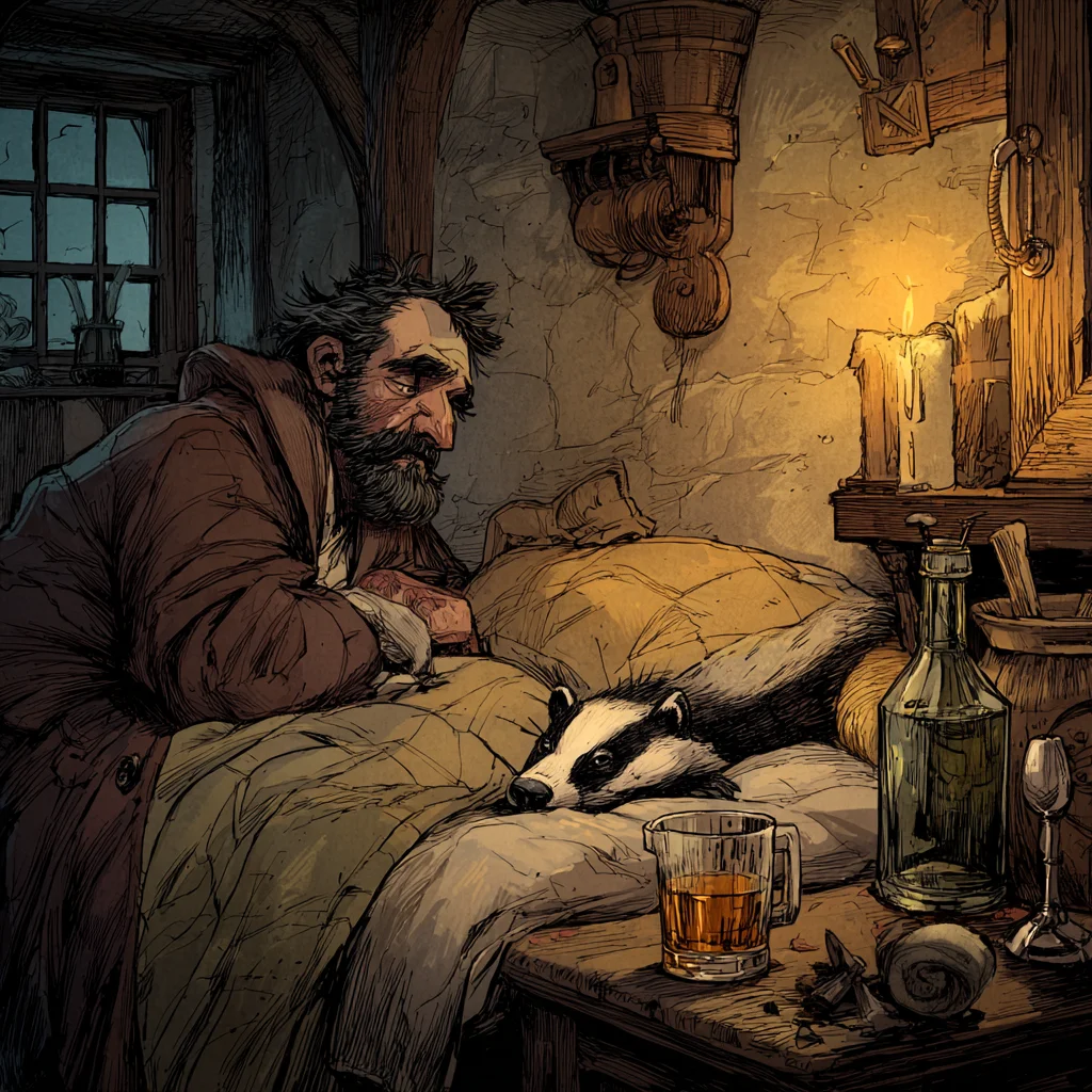 The next morning, Bancroft woke in his room with a badger sleeping next to him. The animal looked as puzzled as Bancroft was.
