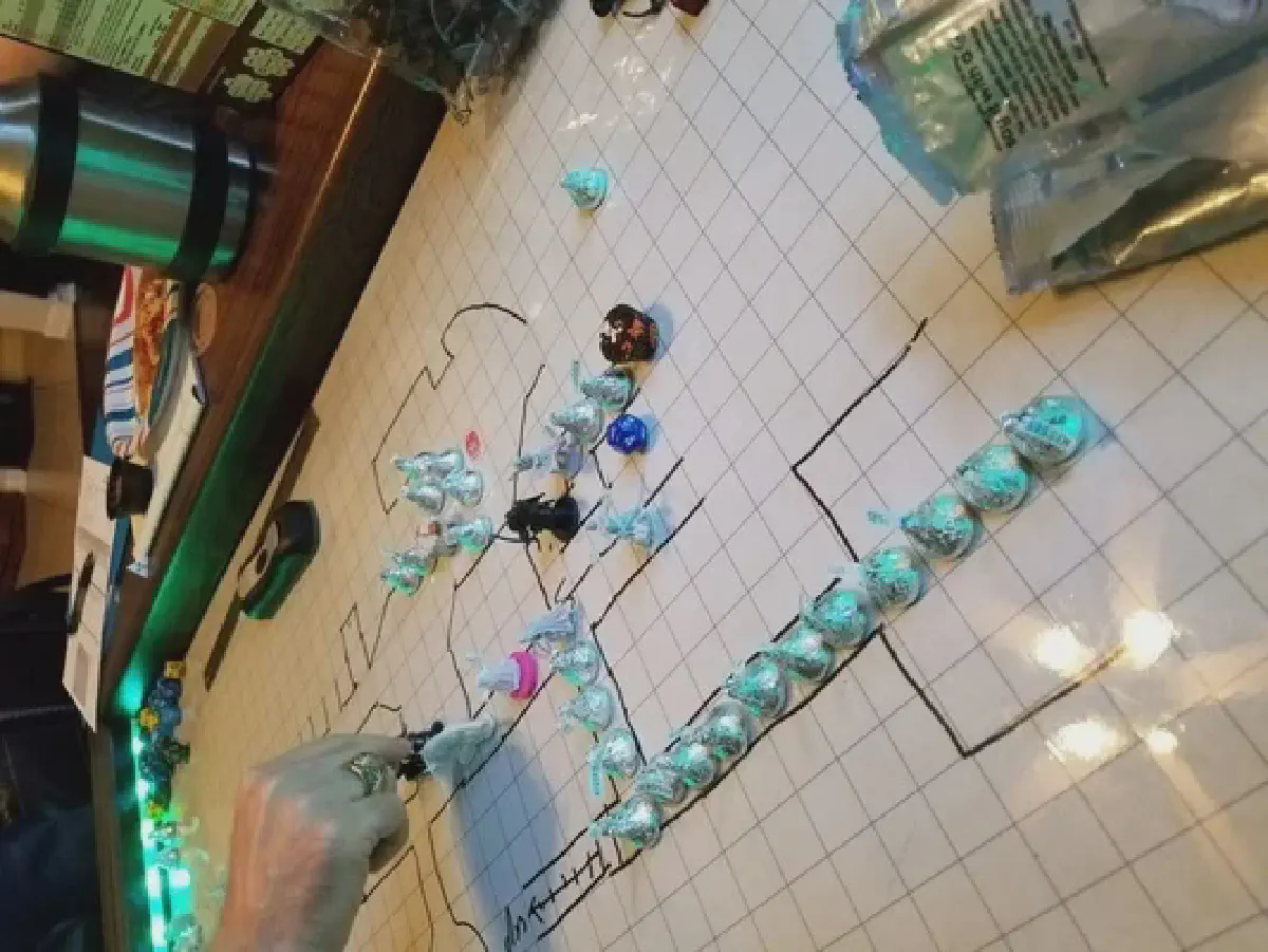 The party collected the mudtiger heads, examined the map to confirm they hadn’t missed anything, discovered they had missed something, and decided against jumping down the second garbage chute to find out what it was. The next step was to continue upwards, hoping to find a way out, or proof that the caverns they were exploring were actually connected somehow to the quarry they were supposed to be investigating.